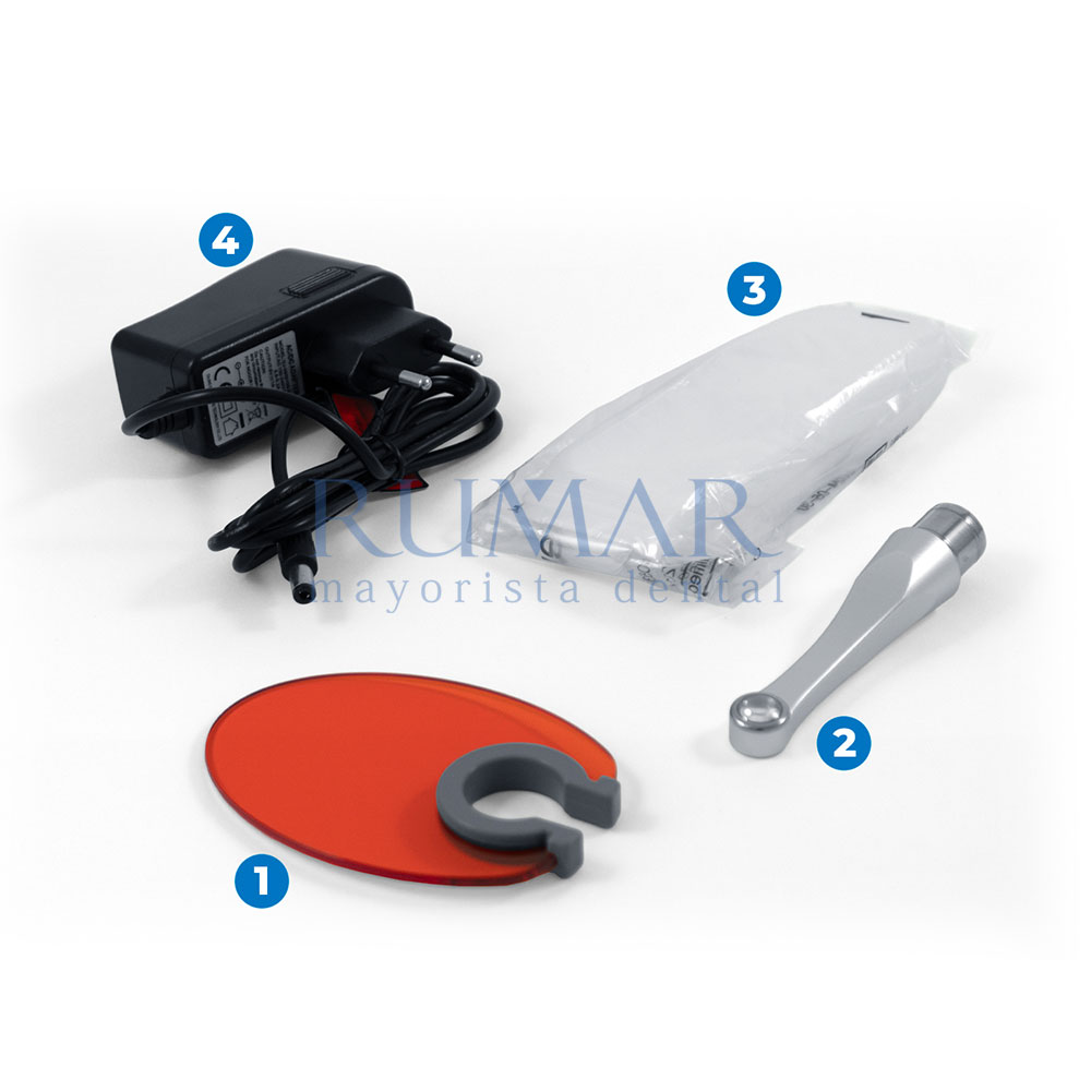 - Sistema de doble longitud (luz azul + luz ultravioleta) o de longitud de onda múltiple. Tecnología capaz de polimerizar todos los materiales dentales fotopolimerizables.