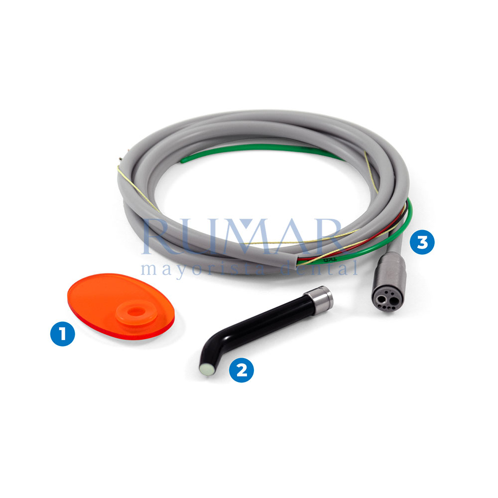 Las fibras ópticas de alta calidad aseguran una intensidad de luz homogénea en toda la superficie y la consecuente polimerización completa y efectiva. En las lámparas tradicionales, en cambio, la luz es desigual y conduce a una polimerización compuesta parcial. Las fibras ópticas o el escudo de protección se pueden esterilizar en autoclave hasta 134 ° C.