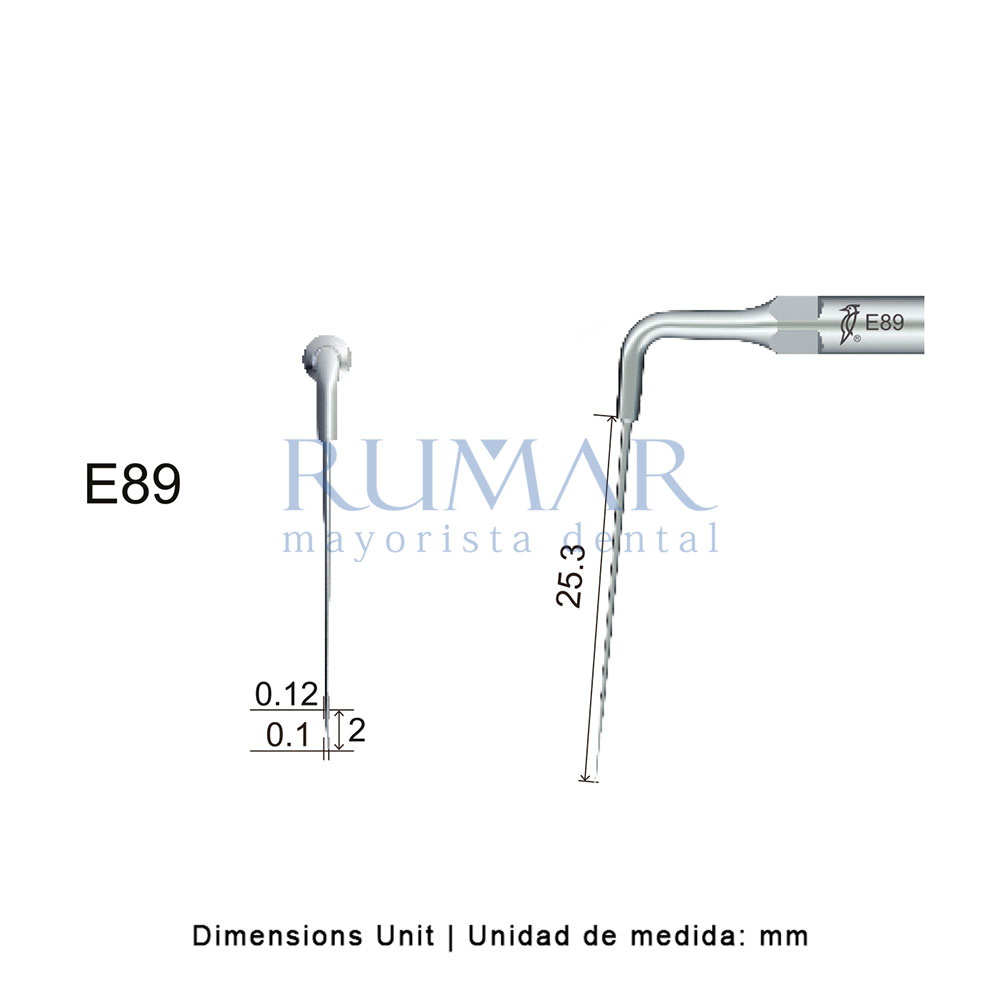 E89 o Katana-H, está diseñada en cooperación con el Dr. Yoshi Terauchi, para la extracción de limas rotas en combinación con el resto de puntas del Endo Kit BFRT (E87, E88 y E89). Con una terminación extremadamente fina en forma de espada, puede precurvarse según los grados de curvatura del conducto radicular.