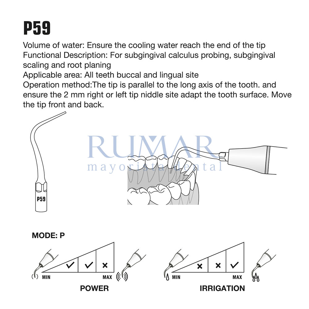 Su forma fina y alargada permite acceder con facilidad a bolsas periodontales, adaptándose a las superficies bucales y linguales de los dientes sin dañar el tejido blando. Está pensada para realizar raspado suave y alisado radicular, facilitando la eliminación de cálculo subgingival y placa adherida en zonas profundas.